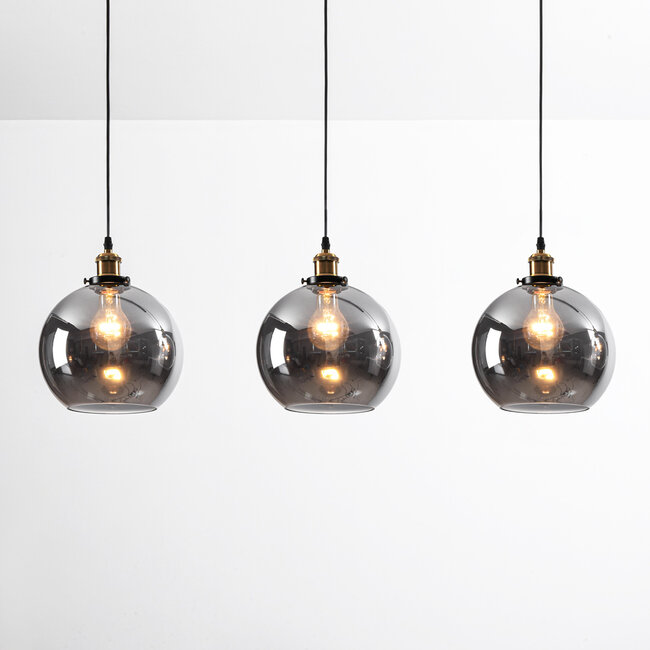 The Katie pendant light impresses with its atmospheric lighting and modern look. The three smoked glass spheres give the lamp a mysterious touch, but because the glass spheres have the same shape and size, Katie also exudes tranquillity. Combined with the rectangular black ceiling plate, the Katie is suitable for above an elongated dining table. The smoked glass creates an atmospheric glow of light.