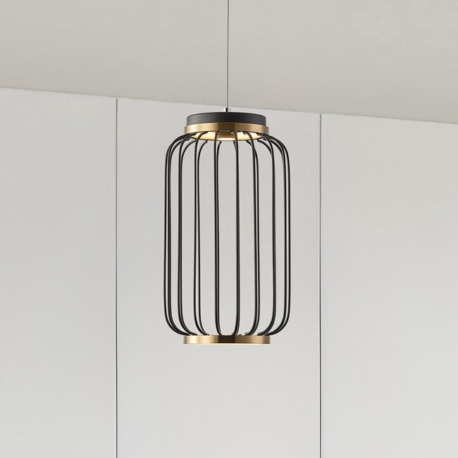 With its unique design, Puri is a beautiful centrepiece for multiple rooms. The black frame with golden details creates a playful light effect on your wall. The lamp can be used as an eye-catcher in the living room, above the dining table or even in the office. The lamp can be easily shortened, allowing you to determine Puri's hanging height yourself. The iron frame is of robust quality, ensuring years of enjoyment from Puri.